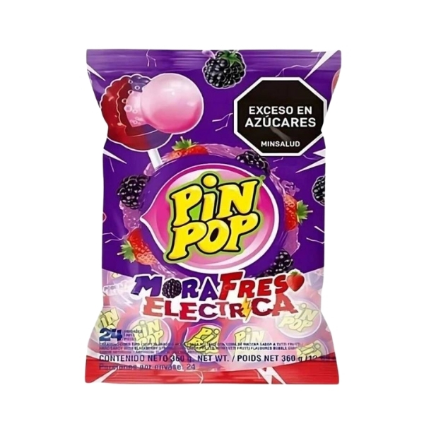 CHUPETA PIN POP GIGANTE MORA FRESA ELECTRICA *24 CJ*16